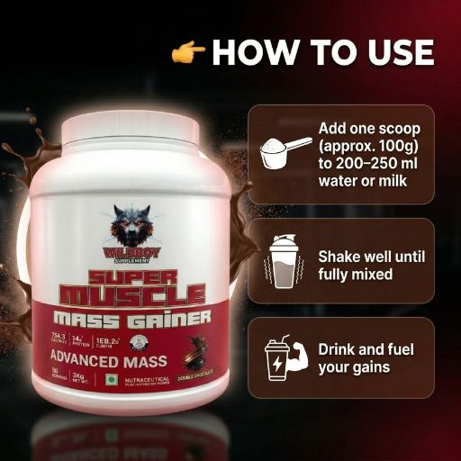 Wildboy Super Muscle Mass Gainer is designed for individuals who struggle to gain weight and muscle. With a powerful blend of carbohydrates, protein, and essential nutrients, it helps you increase calorie intake and fuel intense workouts.